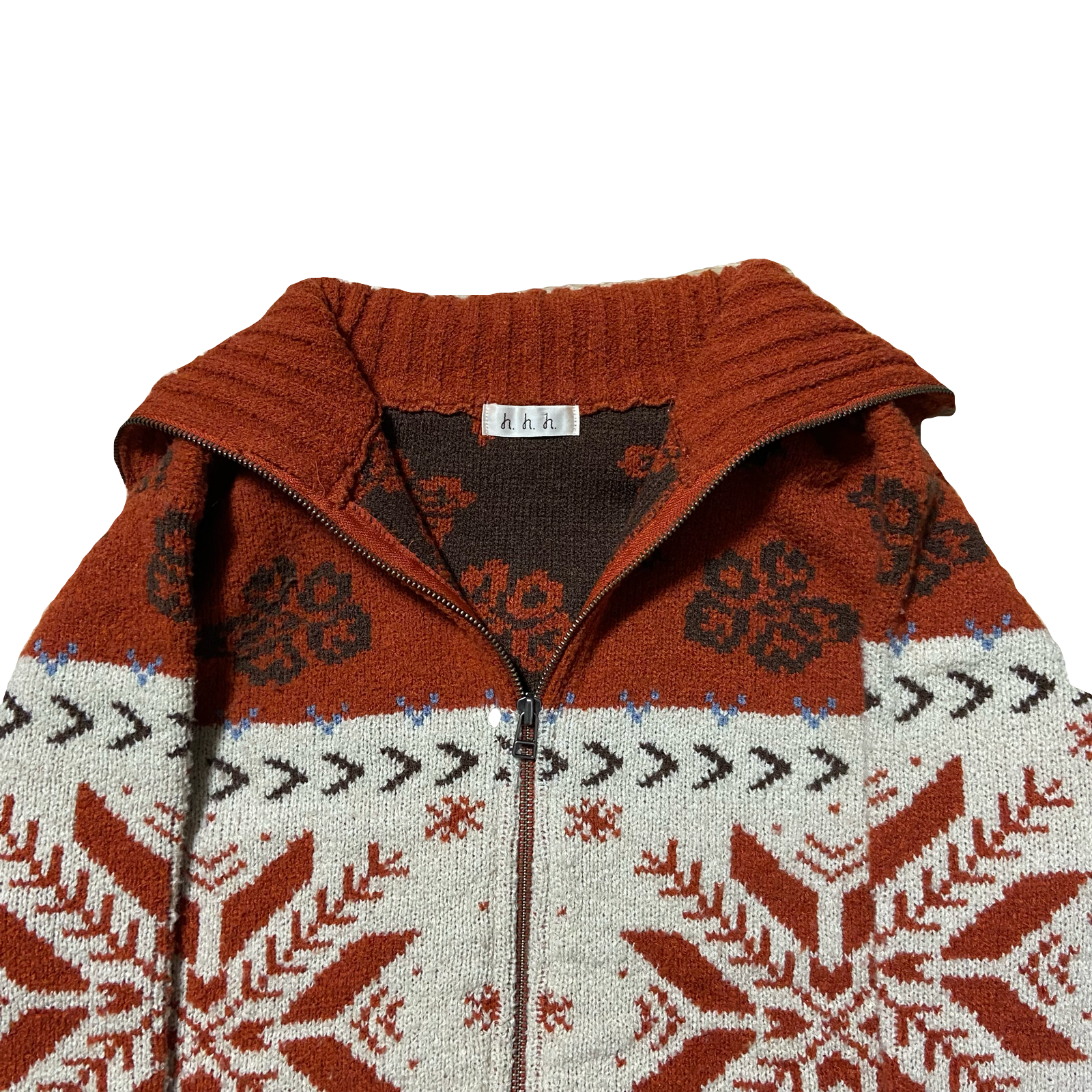 ネイティブ柄のカーディガン。タートルネックなので首上まで守れてかなり暖かいです。タートルの部分が長いので、下ろしてセーラーの様にして着ても可愛いと思います。
